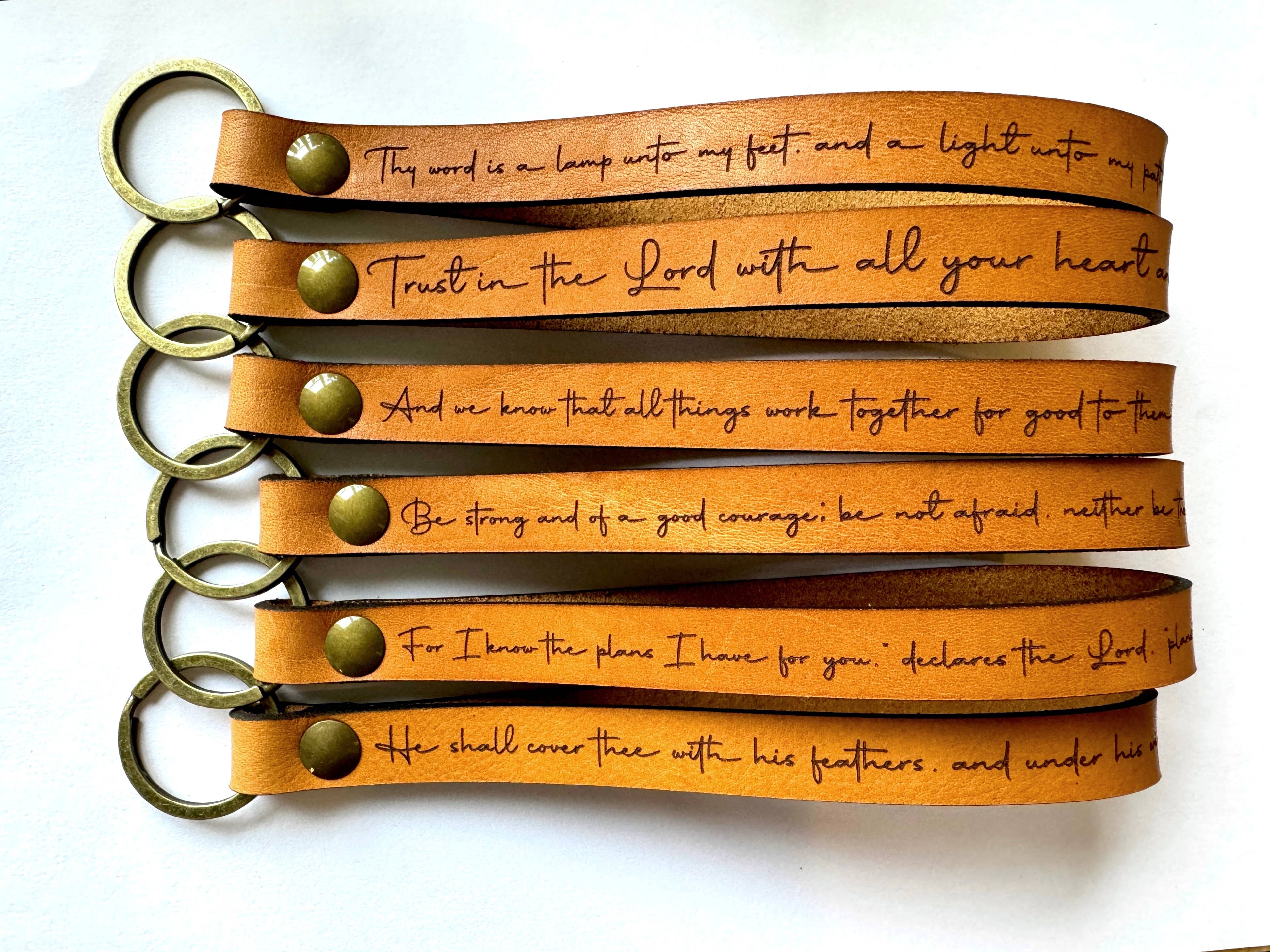 Scripture Wristlet Keychain Set - Full Grain Leather: Psalm 91:4