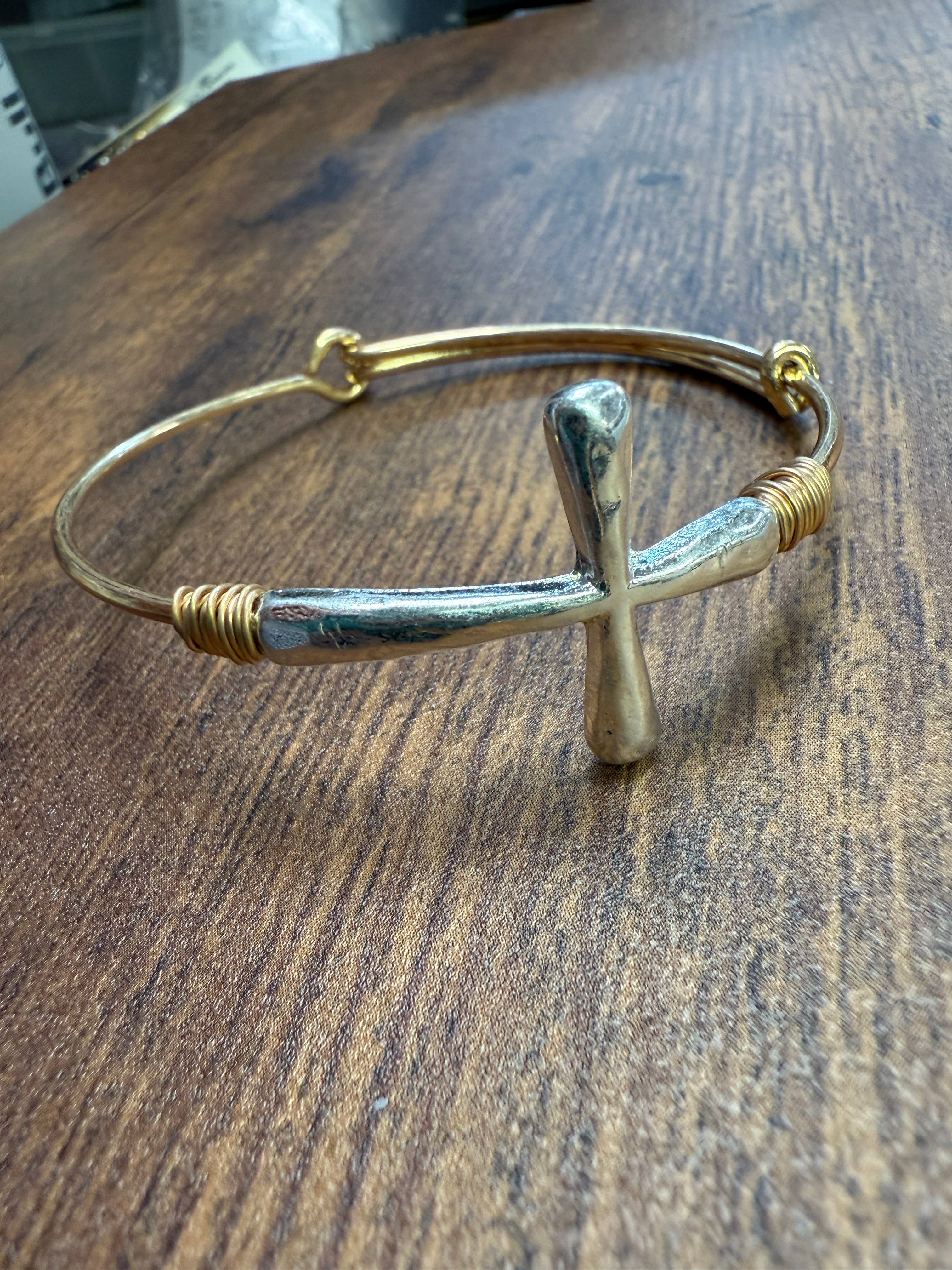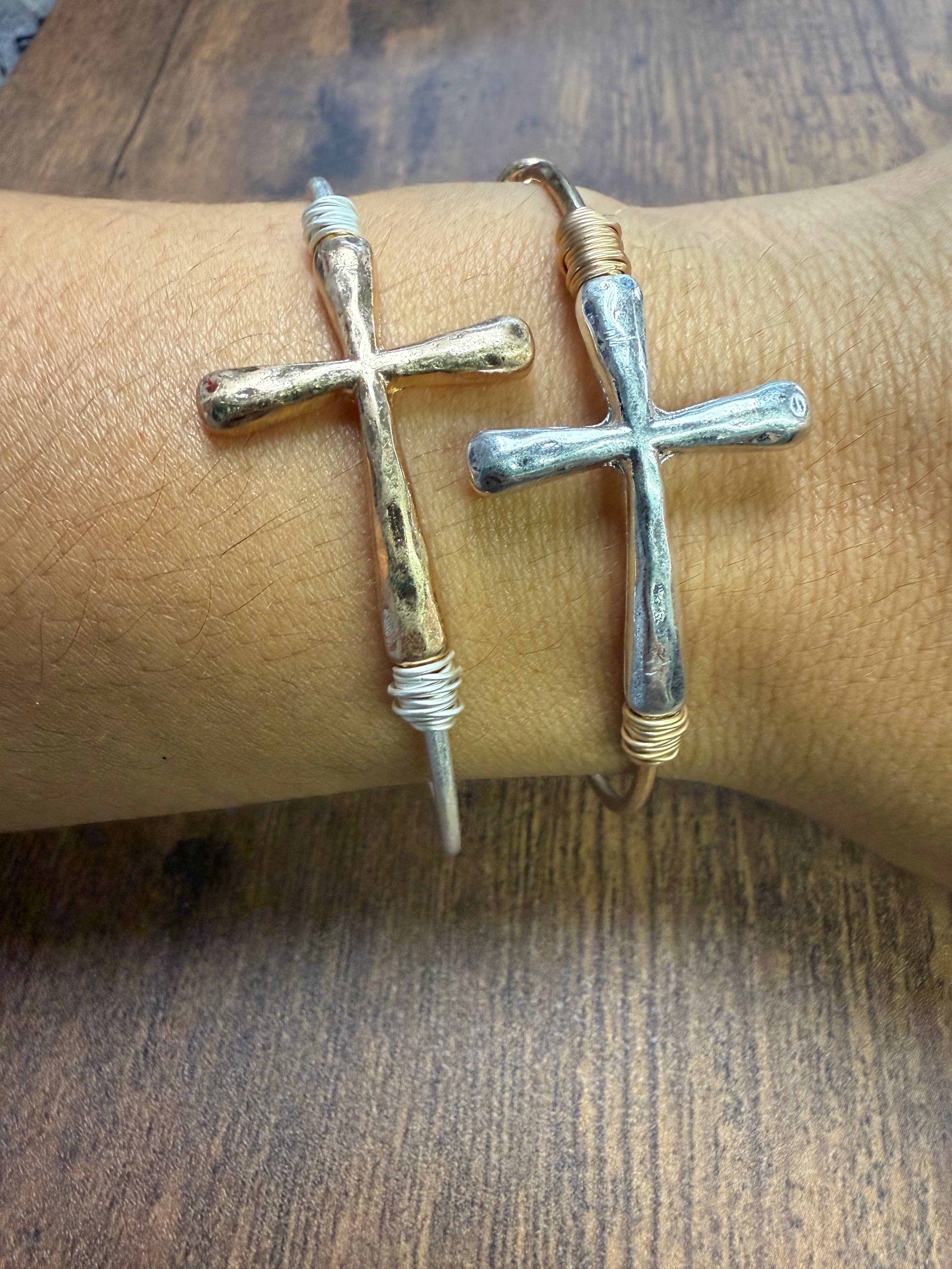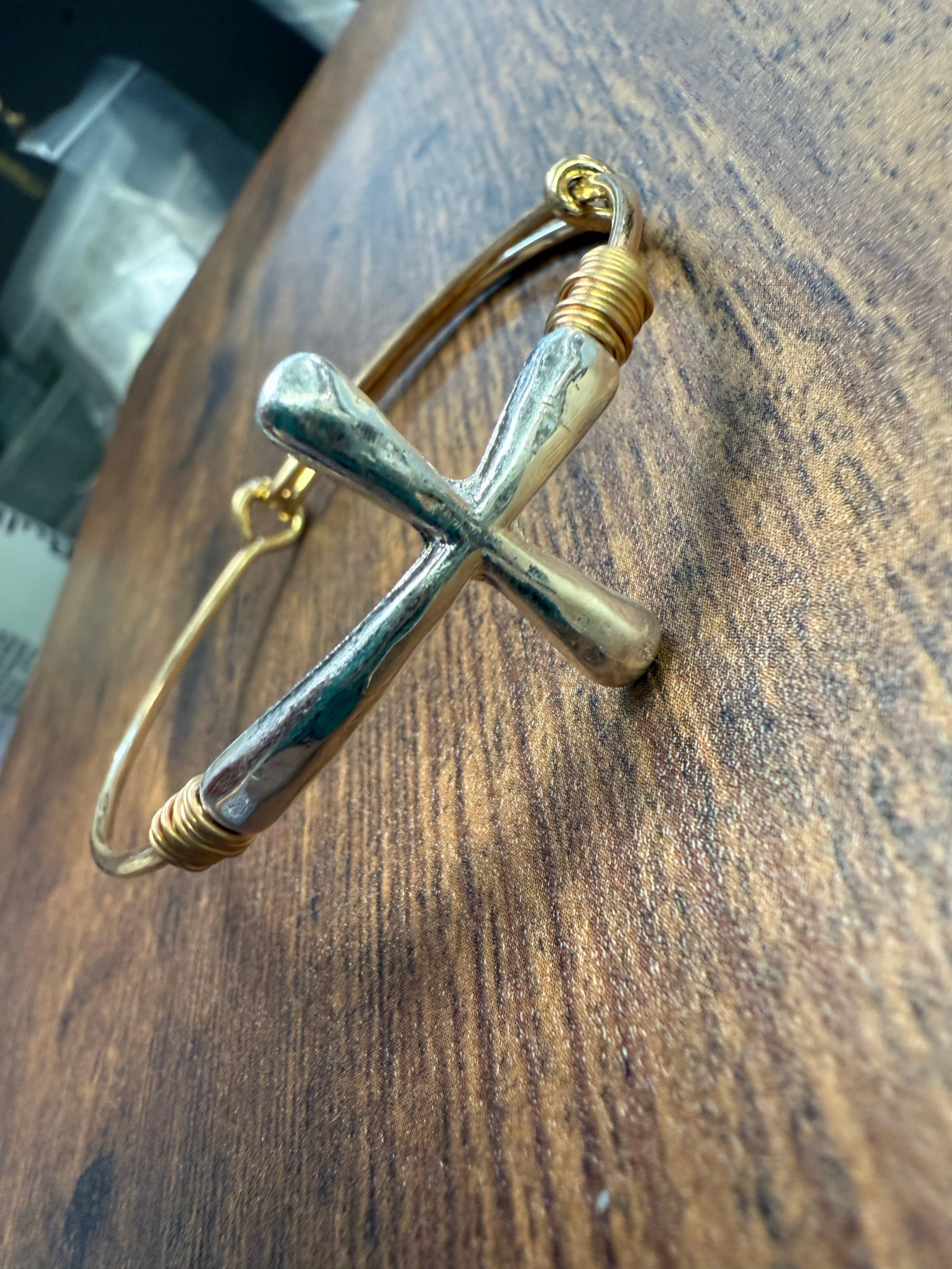 Available in Gold OR Silver Wire Wrapped Cross Bangle Bracelet is gorgeous and light weight.