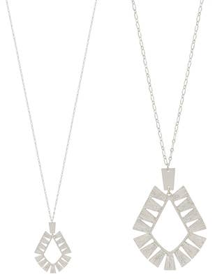 Experience the elegance of simplicity with What's Hot's Silver Geometric Diamond Shape 32" Necklace. This pendant/charm necklace is a perfect blend of modern design and timeless style. The unique geometric diamond shape is a nod to contemporary fashion trends, while the silver finish adds a classic touch. Ideal for everyday wear or special occasions, this necklace can effortlessly elevate any outfit.