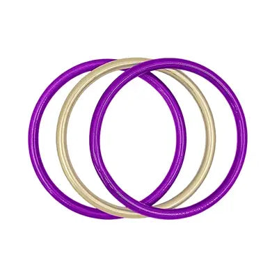 This set of three bracelets will make any wrist sparkle! With hot pink, purple, gold, and red metallic designs, each bracelet delivers an eye-catching style. Showcase the bright colors together or wear them one by one for unique flair!