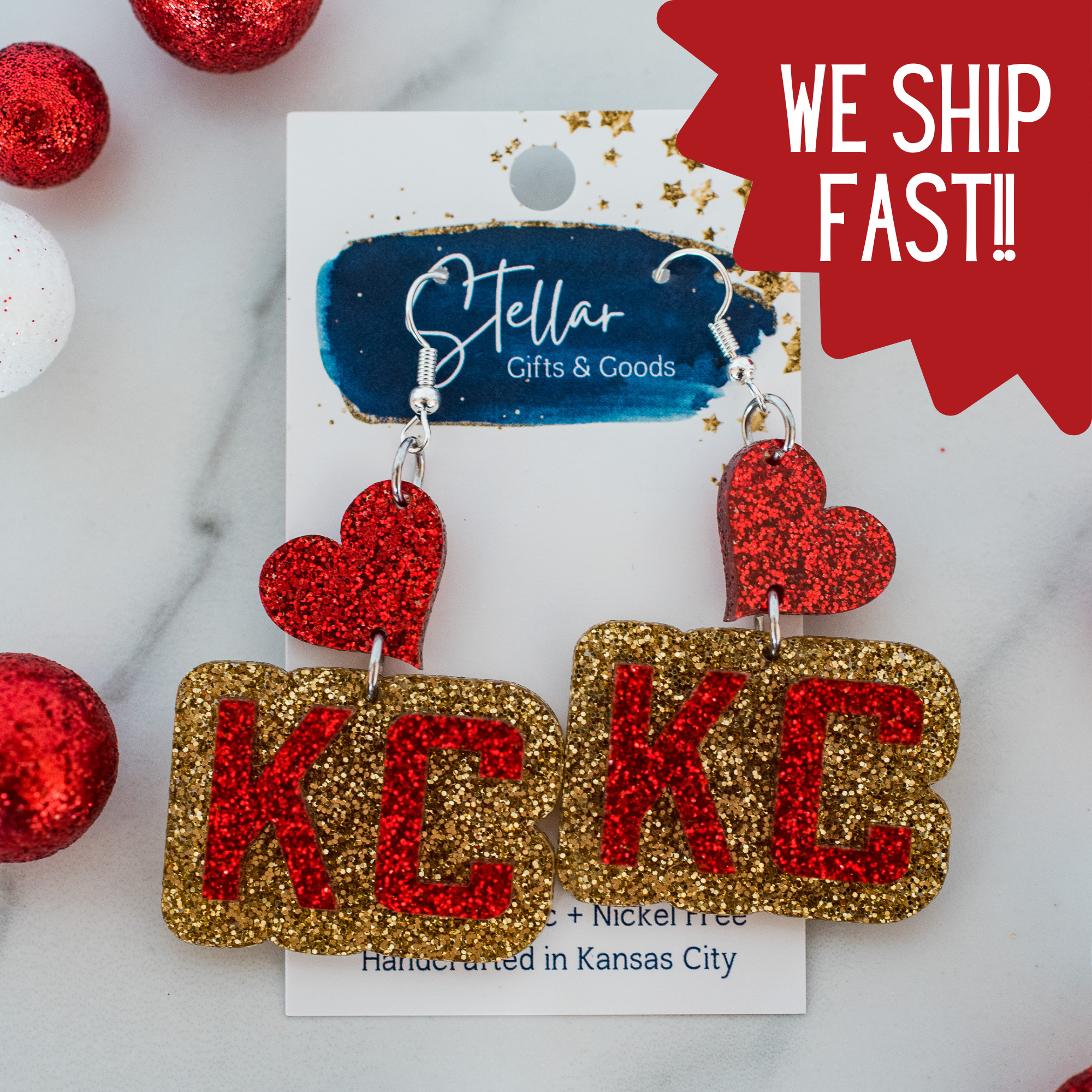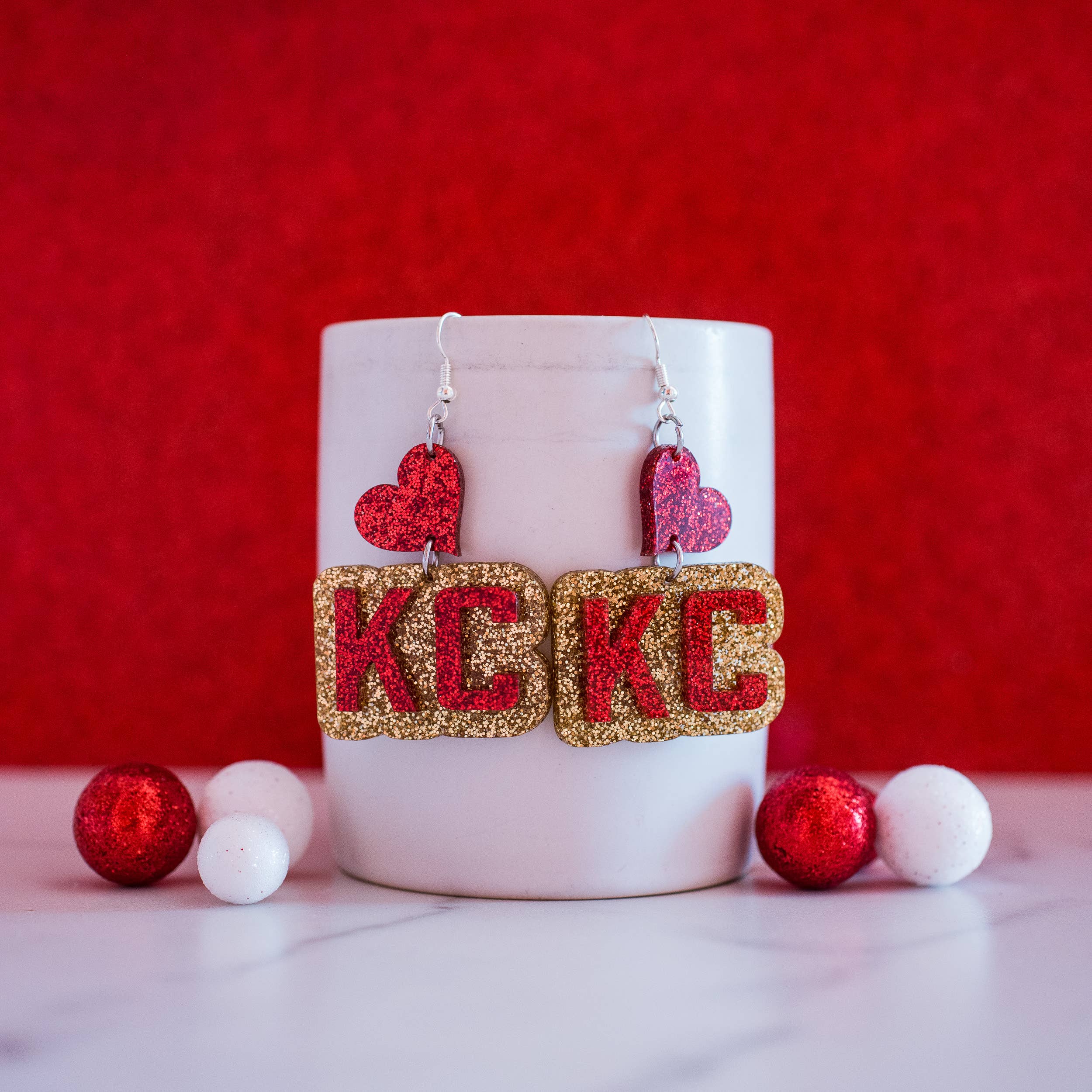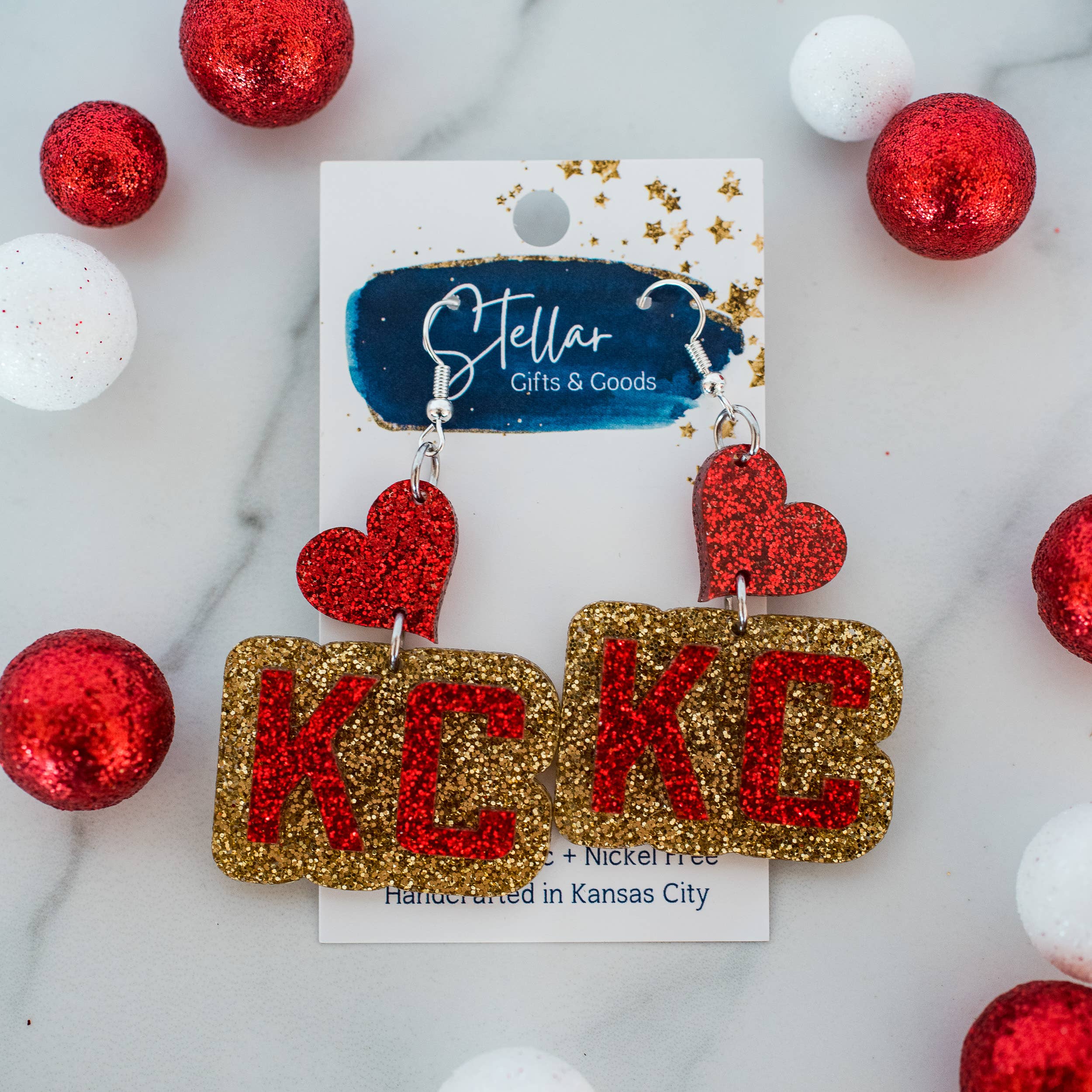 KC Football - Glitter KC Heart Drops Kansas City Red Gold