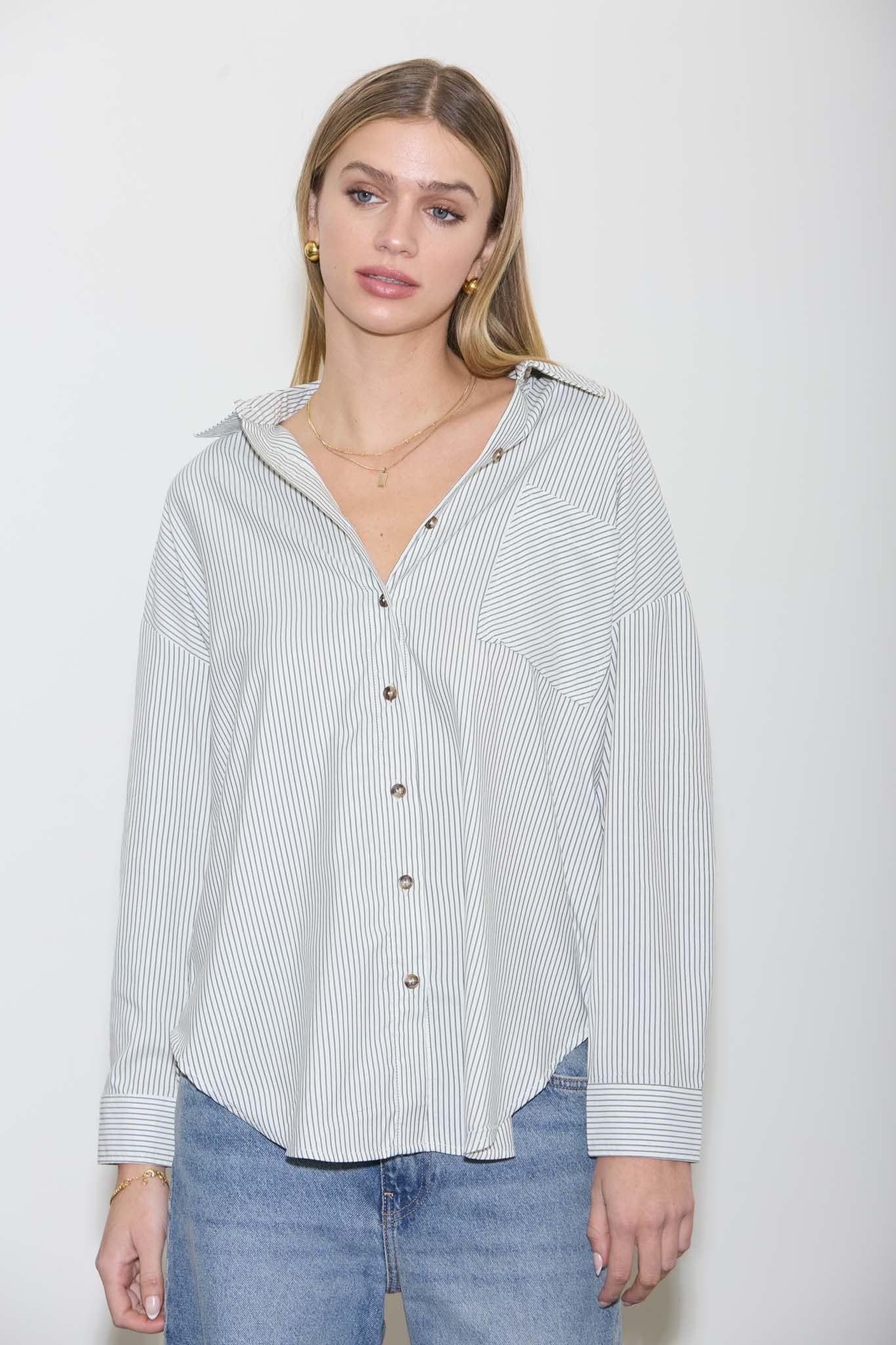 COLLARED LONG SLEEVE BUTTON DOWN BUTTON CUFF DETAIL STRIPE PATTERN NOT LINED